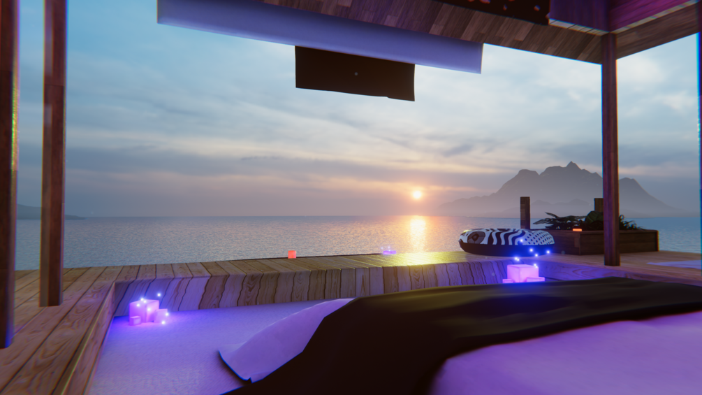 Seabound is an Ocean Pavilion set with warm and cool undertones, comfy and relaxing areas, as well as games and a videoplayer!